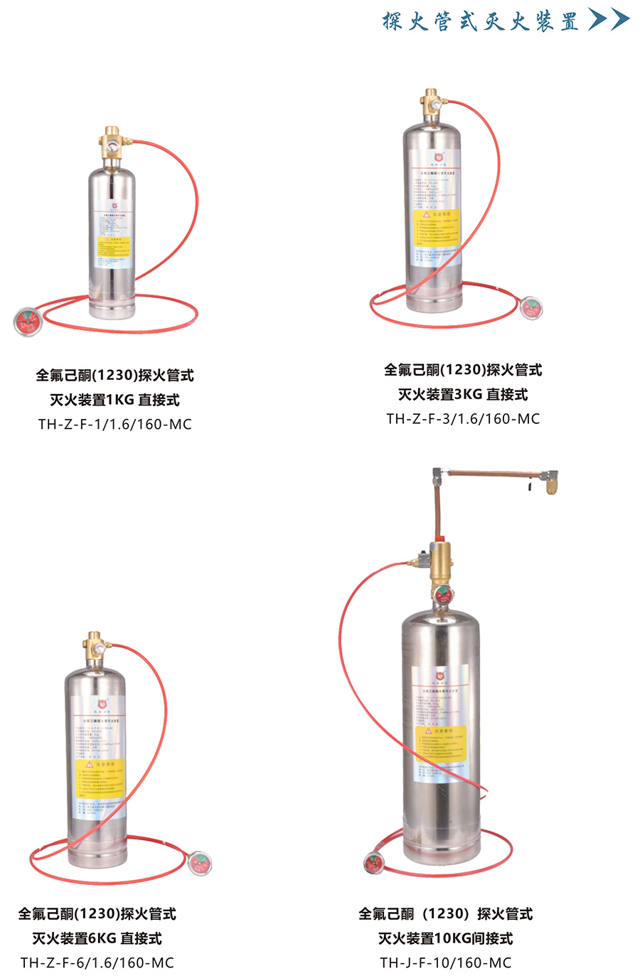探火管式滅火裝置(簡(jiǎn)稱'滅火裝置')是近幾年國(guó)內(nèi)外剛發(fā)展起來(lái)的一種新型滅火裝置,是一套結(jié)構(gòu)簡(jiǎn)單、高度可靠的具有獨(dú)立自動(dòng)探測(cè)和滅火功能的滅火裝置。該類(lèi)滅火裝置采用柔性可彎曲的探火管作為火災(zāi)的探測(cè)報(bào)警部件,同時(shí)這種探火管還可以兼作滅火劑的輸送及釋放管道。